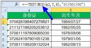 3、根据身份证号计算出生年月:
