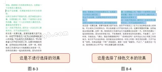 在执行分栏操作前,如果不选择文本,则默认是将分栏应用到整篇文档或当前光标所在节(如果文档分节了的话);如果选择了文本,则将分栏应用到所选文本。图8-3和图8-4就是在这两种情况下,都分两栏的效果,大家一看便知!