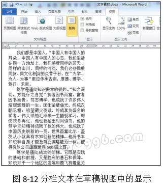 通过上面几个图片的比较,大家可以看出:只有页面视图才能正确显示分栏效果。