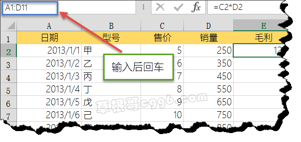 4、在编辑栏中输入单元格地址,按回车快速选取这个区域。无论表格是否连续,是否有数据。