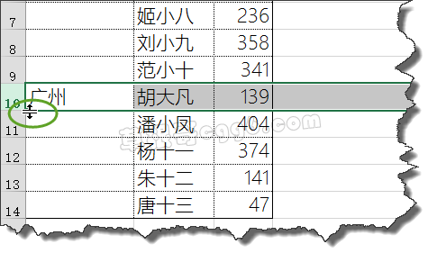 10、选取第4行,按shift键把光标放在行号的右下角,光标会变成如下图所示的形状,然后想插入多少空行就向下拖吧。这种插入方法的好处就是可以动态插入。