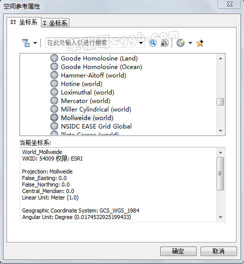 2、在ArcToolbox里点击数据管理工具→投影和变换→定义投影,出现如图2所示对话框:
