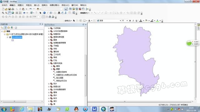 2、在ArcToolbox中选择数据管理工具→投影和变换→定义投影,出现如图所示界面,在输入要素集或要素类里选择要进行定义投影的数据china_prov,如图2。