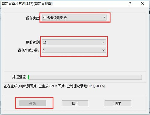 导入完成后,点击【操作类型】下拉框,选择【生成低级别图片】,设置最低级别,点击【确定】按钮,可生成低级别图片。